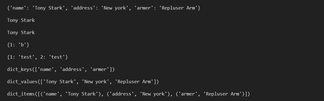 이렇게 여러가지 형태로 출력할 수 있는데, 밑에 items( ) 함수를 보면 (key : value) 처럼 튜플의 형태로 출력되어 딕셔너리에 담아지는 것이 또 다른 특징이다.