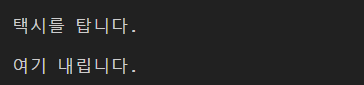 money = True라고 위에서 변수를 만들어 놓았기 때문에 "택시를 탑니다" 라고 출력한다.
