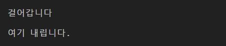 그러면 조건이 이미 성립되었는데 "여기 내립니다"는 왜 출력한걸까? 그 이유는 바로 들여쓰기 때문이다. 사진을 보면 조건문이 안에 print( '여기 내립니다 ') 가 들어있는게 아니고, 그 다음줄에 print( '여기 내립니다 ') 가 적혀있기 때문에 조건문과는 별개의 코드가 되는 것이다.