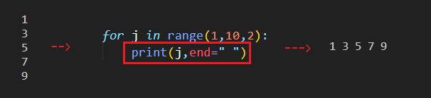 end = " " → 하나씩 아래로 출력되어지는 값들을 연결시켜 한 줄로 출력시켜준다.