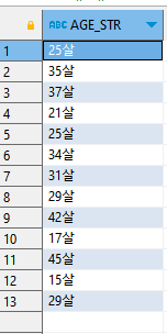 짜잔! 컬럼명이 두개 합쳐지고 데이터 또한 합쳐진 결과가 나왔다. 여기서 다시 봐야할건 AGE 컬럼 같은 경우는 NUMBER 타입이었지만, STR 문자열과 합쳐지면서 최종적으로 문자열이 되었다는 점.