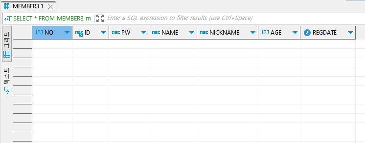 저번 글에서 정리했던 테이블, 기본키, 시퀀스를 써서 member3라는 테이블을 하나 만들고, 시퀀스를 추가하였다. 기본키는 중복되어서는 안되는 값인 id로 지정하였다.
