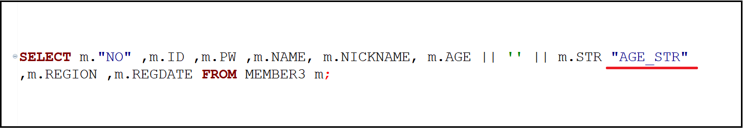 SELECT AGE || ' ' || STR "AGE_STR" FROM MEMBER3 m ;