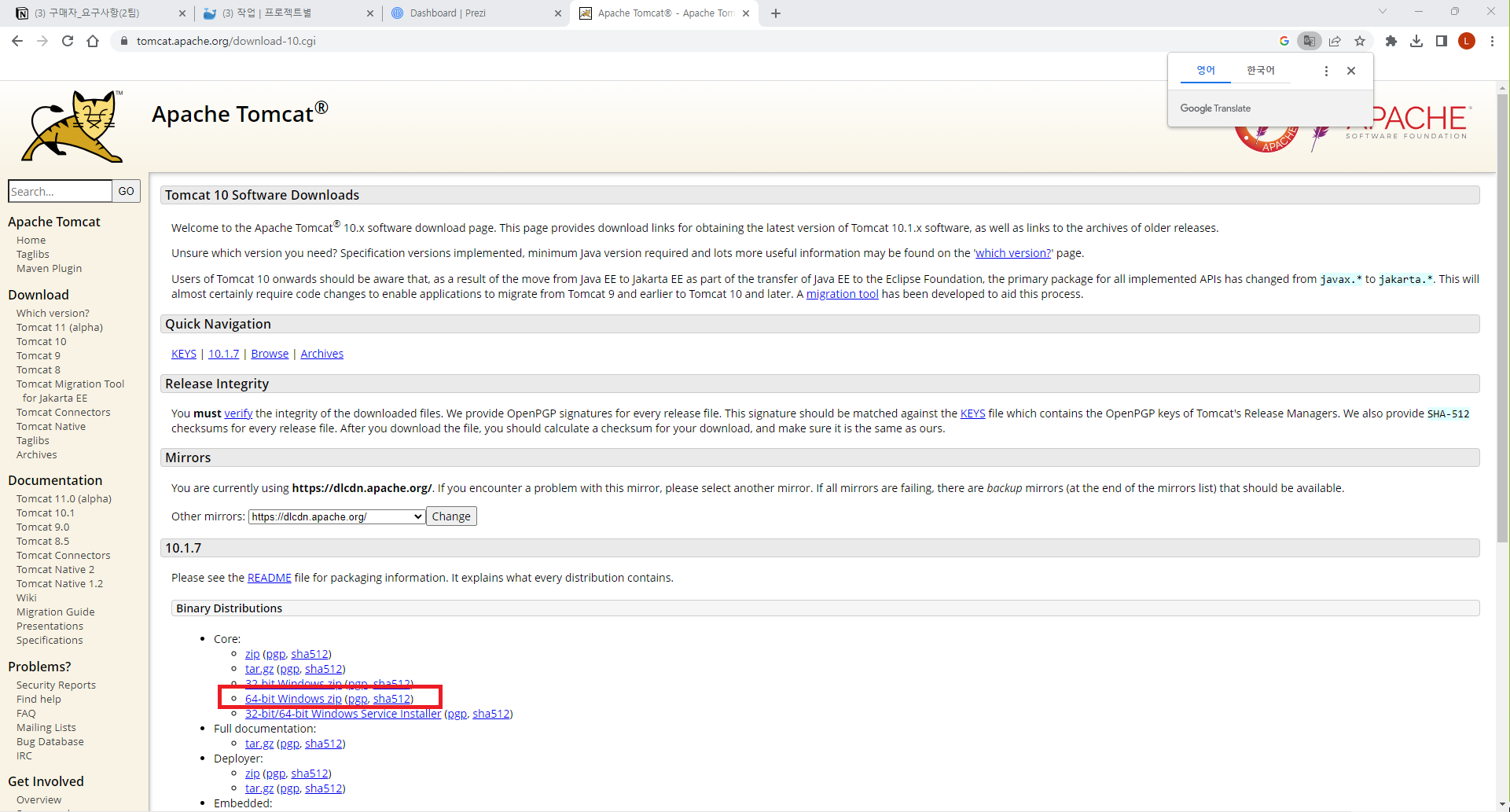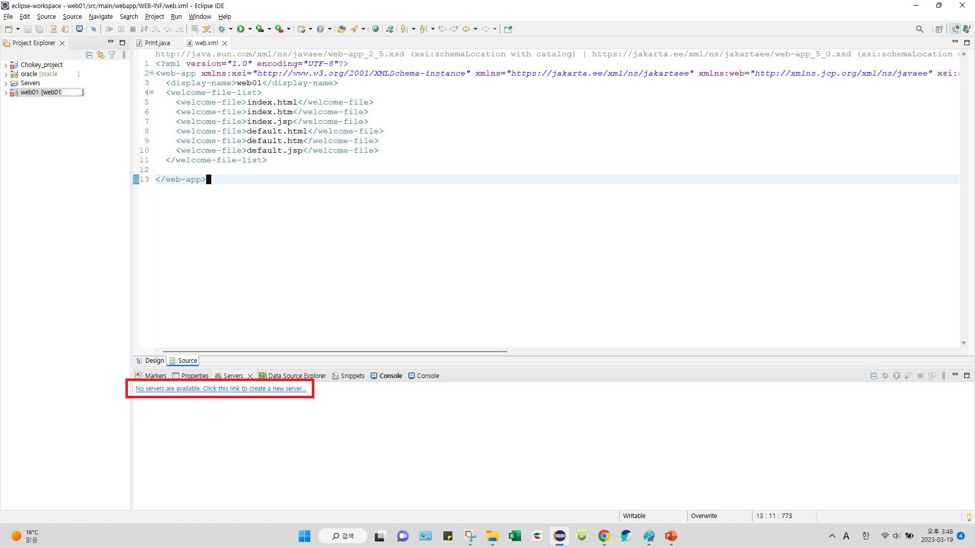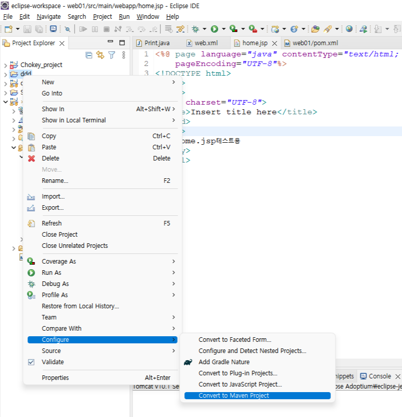톰캣10 서버가 정상적으로 등록되어진걸 볼 수 있다.