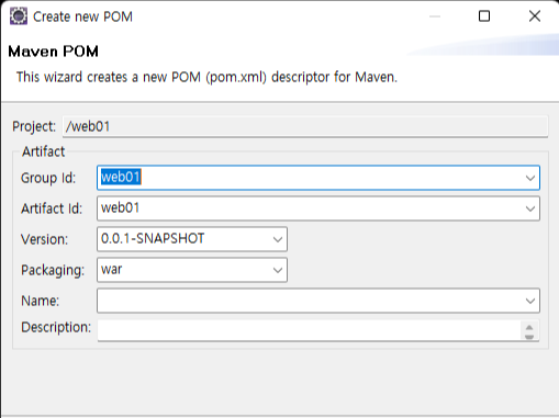 내가 하나 빼먹은 내용이 있다. web1에 POM 파일을 하나 생성해서 메이븐 라이브러리들을 추가 해줘야한다. mybaties, oracle, lombok 총 3개인데 마이베티스 기능과 데이터베이스, 룸북의 편리한 기능을 사용하기 위해 추가해주는 것이다.