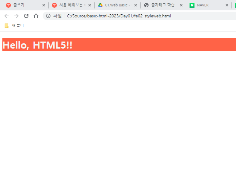 ※ body에서도 style 속성을 통해 html 태그 요소들을 꾸며줄 수 있다. 이것말고도 태그 요소들을 꾸며줄 수 있는 방법이 몇가지가 있는데 밑에 CSS부분에서 적으려고 한다.