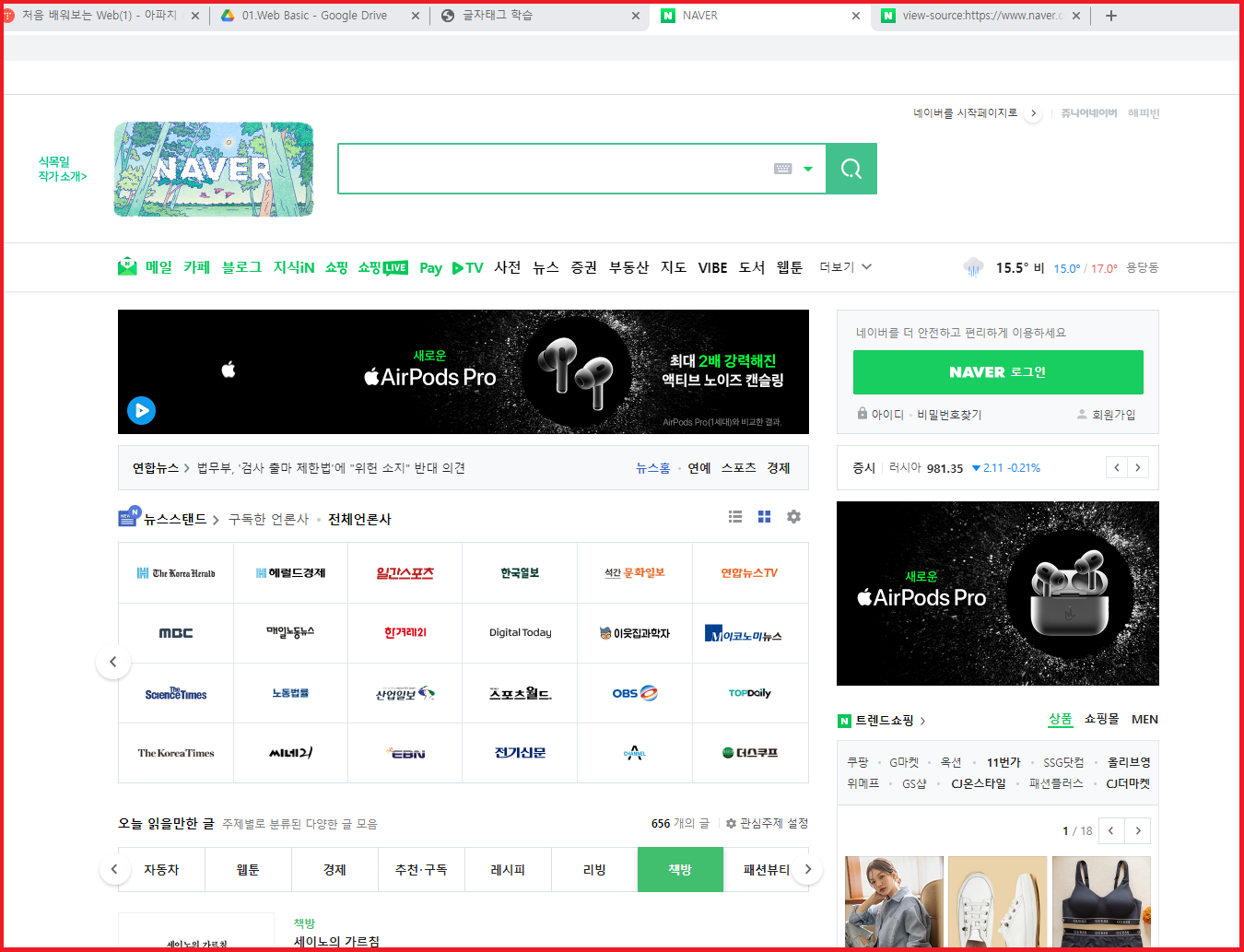 내가 지금 사용하고 있는 티스토리, 네이버 , 구글등 모든 사이트들은 HTML언어로 구성되어 있다. 배너나, 아이콘을 클릭하면 내가 들어가려는 그 곳이 딱 열리는것을 볼 수 있다. 이 자체가 그냥 HTML언어를 설명해준다.